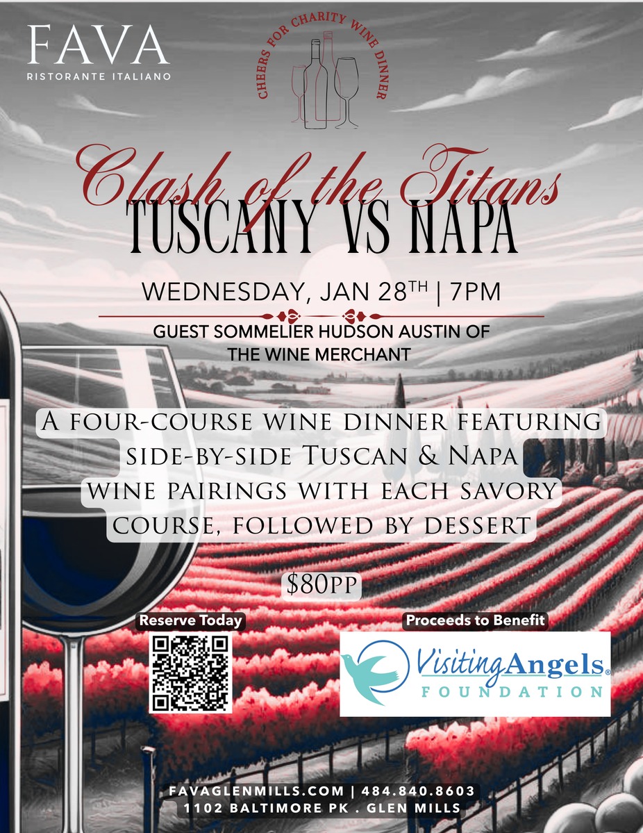 Join us for a four-course wine dinner where Tuscany and Napa Valley go head-to-head.